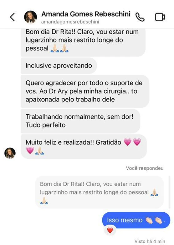 Vamos conversar? Faço parte da equipe da Dr. Ary Leite e quero tirar todas as suas dúvidas sobre os procedimentos pelo Whatsapp. Aguardo sua mensagem!
